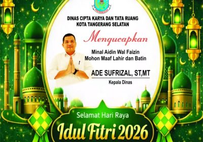 SELAMAT IDUL FITRI 1447 Hijriah 18 March 2026, 23:50 pm Tangerang selatan, posindonesianews.id. Dinas Cipta Karya dan Tata Ruang Kota Tangerang Selatan Mengucapkan SELAMAT IDUL…