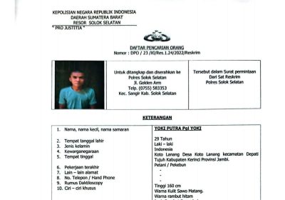 Seorang lelaki beristri punya anak dua belum cerai bawa kabur gadis bawah umur. 23 January 2023, 14:54 pm Daftar pencarian orang (DPO) No.DPO/23/X1/Res.1.24/2022/Reskrim. Seorang lelaki beristri punya anak dua belum cerai bawa kabur…